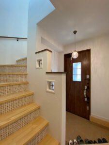 モザイクタイルを貼ったり、R型の垂れ壁があったり