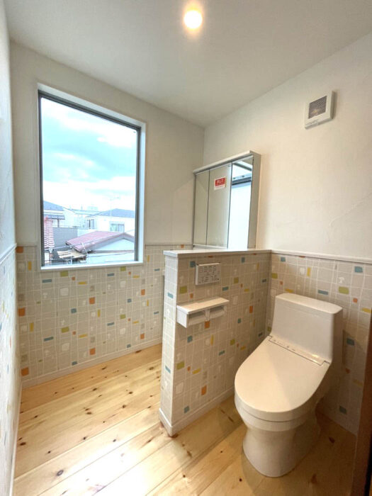 こちらは、S様邸のとっても開放感のあるお手洗いです。窓からはスカイツリーが見えるので絶景ポイントです!