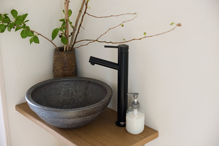 玄関の手洗いカウンター。新しい生活様式にも、素材感・サイズ感にこだわり適応するご提案。